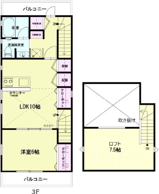 間取り:1LDK+ロフト(LDK10・洋室6帖+ロフト7.5帖)